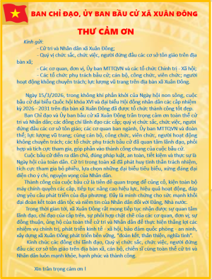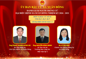 CHÀO MỪNG QUÝ BẠN ĐỌC ĐẾN VỚI TRANG THÔNG TIN ĐIỆN TỬ XÃ XUÂN ĐÔNG, TỈNH ĐỒNG NAI ----NHIỆT LIỆT CHÀO MỪNG 96 NĂM NGÀY THÀNH LẬP ĐẢNG CỘNG SẢN VIỆT NAM (03/02/1930 - 03/02/2026) ------.NHIỆT LIỆT CHÀO MỪNG NGÀY BẦU CỬ ĐẠI BIỂU QUỐC HỘI KHÓA XVI VÀ ĐẠI BIỂU HĐND CÁC CẤP NHIỆM KỲ 2026 - 2031 DIỄN RA VÀO NGÀY 15/03/2026 (CHỦ NHẬT) -----------NGÀY BẦU CỬ - NGÀY HỘI CỦA NIỀM TIN, ĐOÀN KẾT VÀ KHÁT VỌNG VIỆT NAM----------BẦU CỬ ĐỂ CHỌN NGƯỜI CÓ TÂM, CÓ TẦM, TẬN TỤY PHỤC VỤ NHÂN DÂN --------------MỖI LÁ PHIẾU LÀ MỘT NIỀM TIN, MỘT TRÁCH NHIỆM ĐỐI VỚI TỔ QUỐC----------