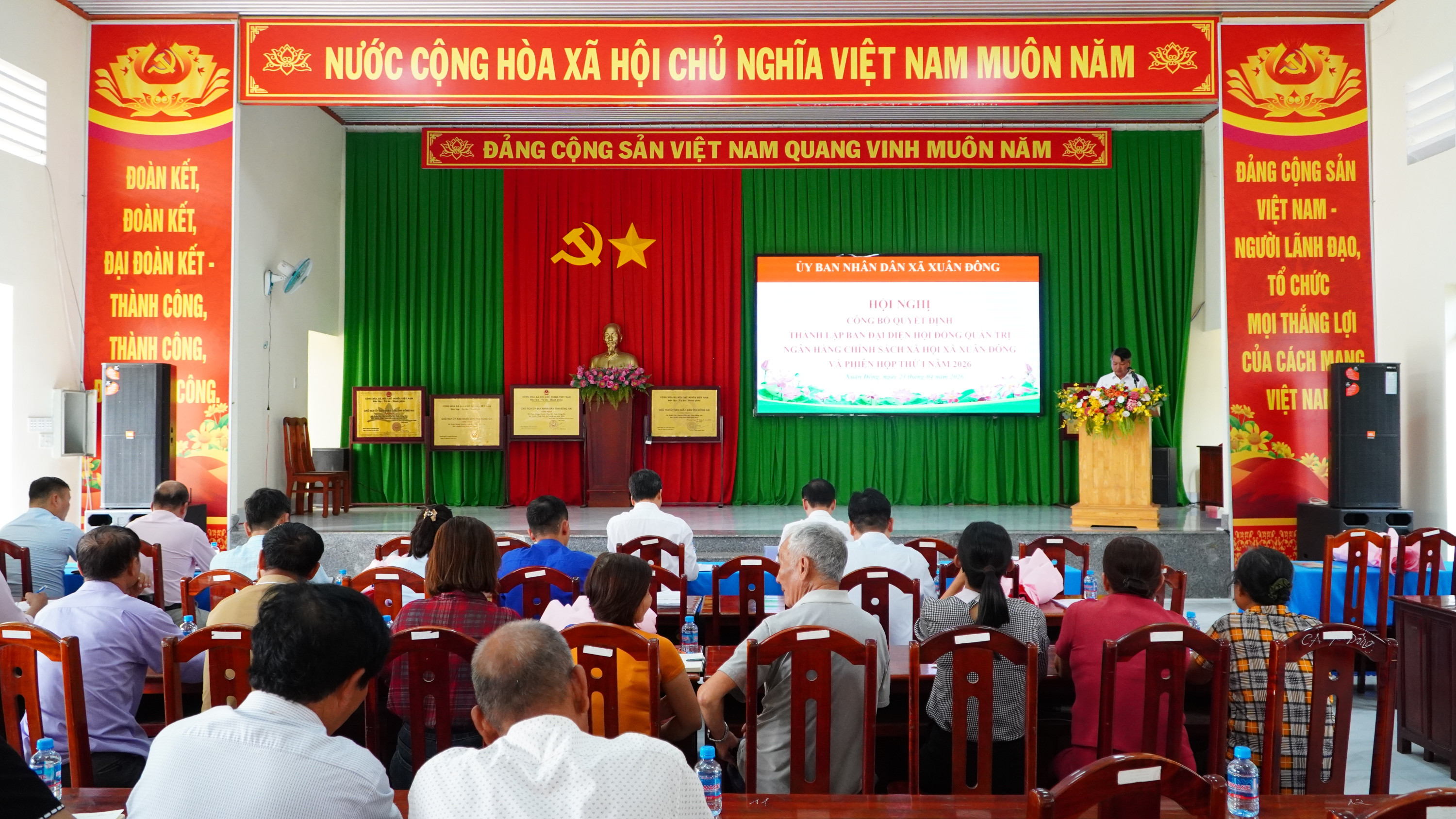 HỘI NGHỊ CÔNG BỐ QUYẾT ĐỊNH THÀNH LẬP BAN ĐẠI DIỆN HỘI ĐỒNG QUAN TRỊ NGÂN HÀNG CHÍNH SÁCH XÃ HỘI XÃ XUÂN ĐÔNG VÀ PHIÊN HỌP THỨ I, NĂM 2026.